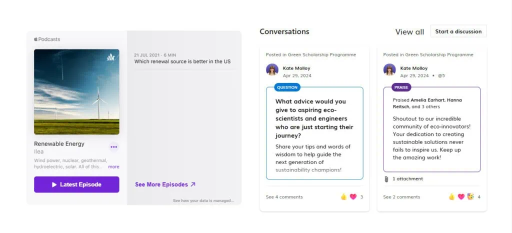 Great for embedding media (podcasts, social media feeds or training videos) from platforms like Spotify or YouTube directly onto a page.